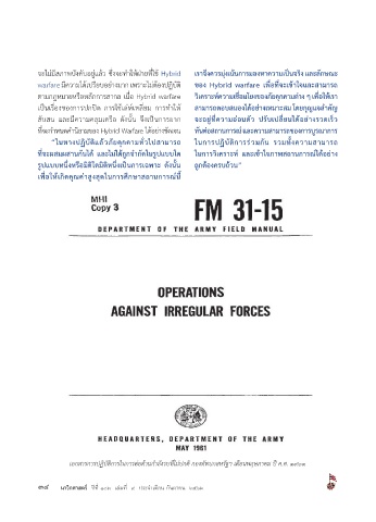 เอกสารการปฏิบัติการในการต่อต้านก�าลังรบที่ไม่ปกติ กองทัพบกสหรัฐฯ เดือนพฤษภาคม ปี ค.ศ. ๑๙๖๑