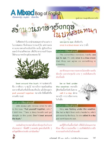 ในชีวิตประจำวัน เรามักจะสอดแทรกสำนวนต่าง ๆ see eye to eye: เห็นพ้องกัน