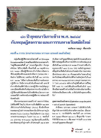 พ.ศ. ๒๔๘๓ เพ่อปฏิบัติการรบกับกาลังทางเรือสยาม คร้งสุดท้ายเพ่อยืนยันจานวน ตาแหน่ง ชนิด ประเภทของ