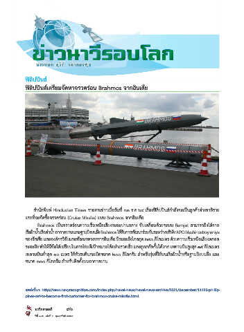 ฟิลิปปินส์เตรียมจัดหาจรวดร่อน Brahmos จากอินเดีย