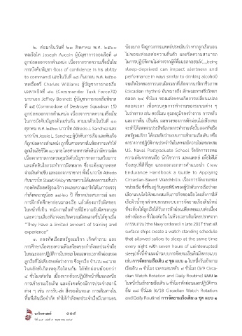 ต่าง ๆ เช่น การรับ-ส่ง สิ่งของในทะเล การเดินทางใน อ่น ๑๘ ช่วโมง (6/18 Circadian Watch Rotation
