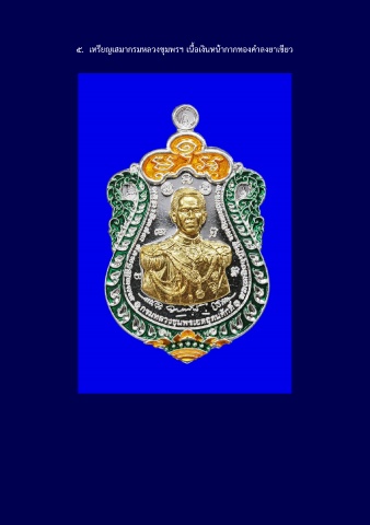 ๕. เหรียญเสมากรมหลวงชุมพรฯ เนื้อเงินหน้ากากทองคำลงยาเขียว