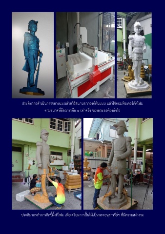 ประติมากรดำเนินการขยายแบบด้วยวิธีสแกนจากองค์ต้นแบบ แล้วใช้คอมพิวเตอร์ตัดโฟม ตามขนาดที่ต้องการคือ ๑ เท่าครึ่ง ของพระองค์องค์จริง ประติมากรทำการติดขี้ผึ้งที่โฟม เพื่อเตรียมการปั้นให้เป็นพระอนุสาวรีย์ฯ ที่มีความสง่างาม