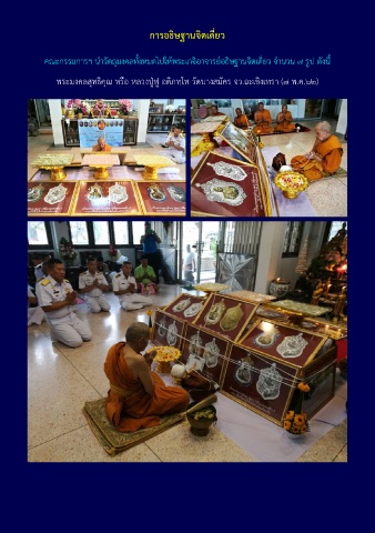 การอธิษฐานจิตเดี่ยว คณะกรรมการฯ นำวัตถุมงคลทั้งหมดไปให้พระเกจิอาจารย์อธิษฐานจิตเดี่ยว จำนวน ๗ รูป ดังนี้ ู พระมงคลสุทธิคุณ หรือ หลวงปู่ฟ อติภทฺโท วัดบางสมัคร จว.ฉะเชิงเทรา (๗ พ.ค.๖๒)