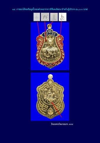 ๑๔. การตอกโค้ดเหรียญเนื้อทองคำลงยาราชาวดีสีแดงพิเศษ (สำหรับผู้บริจาค ๕๐,๐๐๐ บาท) ยิงเลเซอร์หมายเลข ๙๙๙