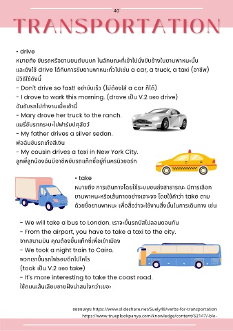 ขอขอบคุณ https://www.slideshare.net/Suely48/verbs-for-transportation