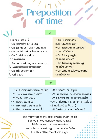 - At midnight เวลาเทยงคน (ถาพดถงวันตองเปน on)