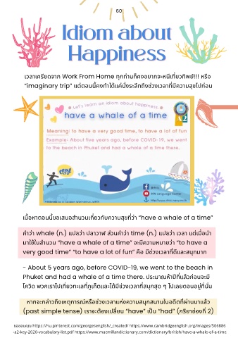 เนอหาตอนนขอเสนอสํานวนเกยวกบความสุขทว่า “have a whale of a time”