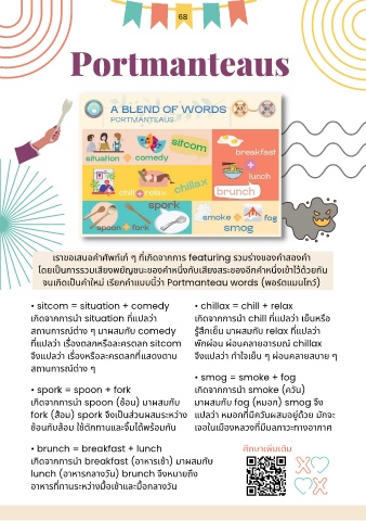• spork = spoon + fork เกดจากการนา smoke (ควัน)