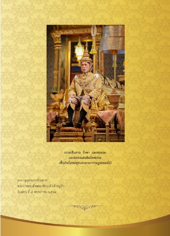 เราจะสืบสาน รักษา และต่อยอด และครองแผ่นดินโดยธรรม เพื่อประโยชน์สุขแห่งอาณาราษฎรตลอดไป พระปฐมบรมราชโองการ พระบาทสมเด็จพระวชิรเกล้าเจ้าอยู่หัว วันเสาร์ ที่ ๔ พฤษภาคม ๒๕๖๒