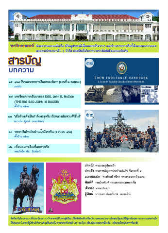 ข้อคิดเห็นในบทความที่นำาลงนิตยสารนาวิกศาสตร์เป็นของผู้เขียน มิใช่ข้อคิดเห็นหรือนโยบายของหน่วยงานใดของรัฐและมิได้ผูกพันต่อทางราชการแต่อย่างใด