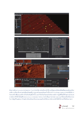 ตัวอย่างหน้าจอ Computer Aid Detection Tool (CAD) เป็นการช่วยค้นหาเป้าท่น่าจะเป็นทุ่นระเบิดโดยอัตโนมัติของคอมพิวเตอร์โดย