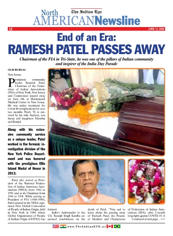Chairman of the FIA in Tri-State, he was one of the pillars of Indian community
