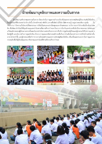 ติด เพื่อพัฒนานักเรียนให้มีคุณลักษณะและค่านิยมตามที่สถานศึกษาก�าหนด มีระบบการป้องกันและช่วยเหลือนักเรียน ตลอดจนการส่งต่อและ