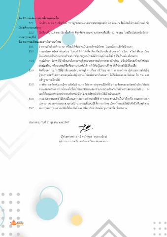 33.2 การลงโทษ หรือทาทัณฑ์บน ในกรณีท่ทาให้เส่อเสียมช่อเสียงเกียรติยศของโรงเรียน หรือฝ่าฝืนระเบียบ