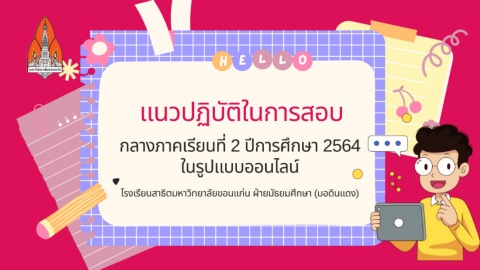 H E L L O ิ ิ แนวปฏบัตในการสอบ กลางภาคเรียนท 2 ปการศกษา 2564 ึ ี ในรูปแบบออนไลน ์ โรงเรียนสาธิตมหาวิทยาลยขอนแกน ฝายมัธยมศกษา (มอดินแดง) ึ ่ ั