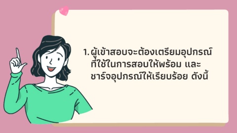 ้ ุ ี ้ ู้ 1. ผเขาสอบจะตองเตรยมอปกรณ ์ ้ ท ใชในการสอบใหพรอม และ ี ้ ้ ั ้ ี ุ ์ ้ ์ ชารจอปกรณใหเรยบรอย ดงน ี