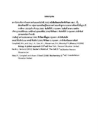 ปรีชา สุวรรณพินิจและ นงค์ลักษณ์ สุวรรณพินิจ( 2546) ชีววิทยา 1 พิมพ์ครั้งที่ 5 กรุงเทพฯ: ส านักพิมพ ์
