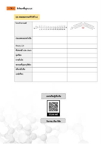- 76 - ชีววทยาพื้นฐาน ม.4 ิ Q3: ทดสอบความเข้าใจที่ 3.6 โครงสร้างทางเคมี ประเภทของกรดไขมัน จ านวน C:H พันธะเคมี side chain จุดเดือด การเป็นไข สถาณะที่อุณหภูมิห้อง กลิ่นเหม็นหืน แหล่งที่พบ แหล่งเรียนรู้เพิ่มเติม กิจกรรม เรื่อง ลิพิด