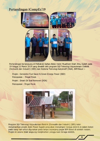 19 hingga 21 March 2019 yang diwakili oleh program Sijil Teknologi Kejuruteraan Elektrik