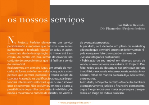 tenciais interessados valorizará quer o seu o imóvel Além disto, o Projecto Perfeito oferece-lhe também