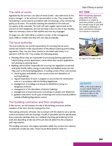l Planning officer: they are responsible for processing planning applications, p Figure 4.2 The clerk of works