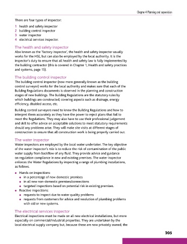 the building contractor (this is covered in Chapter 1, Health and safety practices