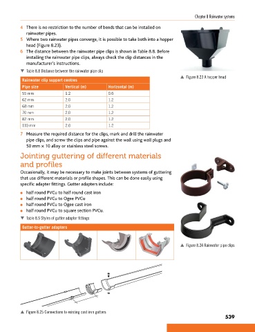 6 The distance between the rainwater pipe clips is shown in Table 8.8. Before