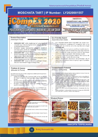 • MOSCHATA TART bebas daripada bahan pengawet, pera- sekaligus membantu masalah ekonomi peniaga.