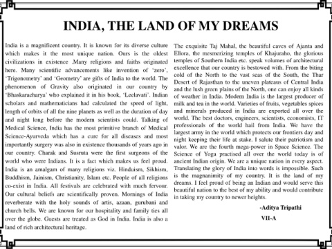 co-exist in India. All festivals are celebrated with much fervour. dreams. I feel proud of being an Indian and would serve this