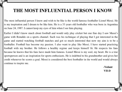 The most influential person I know and wish to be like is the world famous footballer Lionel Messi. He