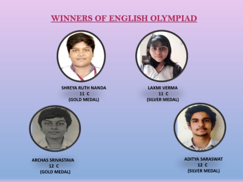 WINNERS OF ENGLISH OLYMPIAD SHREYA RUTH NANDA LAXMI VERMA 11 C 11 C (GOLD MEDAL) (SILVER MEDAL) ARCHAS SRIVASTAVA ADITYA SARASWAT 12 C 12 C (GOLD MEDAL) (SILVER MEDAL)