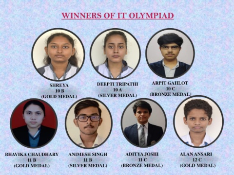 WINNERS OF IT OLYMPIAD SHREYA DEEPTI TRIPATHI ARPIT GAHLOT 10 B 10 A 10 C (GOLD MEDAL) (SILVER MEDAL) (BRONZE MEDAL) BHAVIKA CHAUDHARY ANIMESH SINGH ADITYA JOSHI ALAN ANSARI 11 B 11 B 11 C 12 C (GOLD MEDAL) (SILVER MEDAL) (BRONZE MEDAL) (GOLD MEDAL)