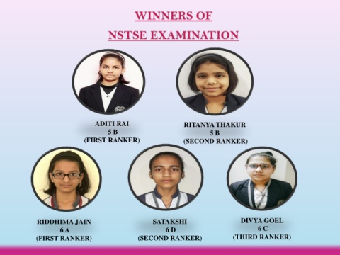 WINNERS OF NSTSE EXAMINATION ADITI RAI RITANYA THAKUR 5 B 5 B (FIRST RANKER) (SECOND RANKER) RIDDHIMA JAIN SATAKSHI DIVYA GOEL 6 A 6 D 6 C (FIRST RANKER) (SECOND RANKER) (THIRD RANKER)