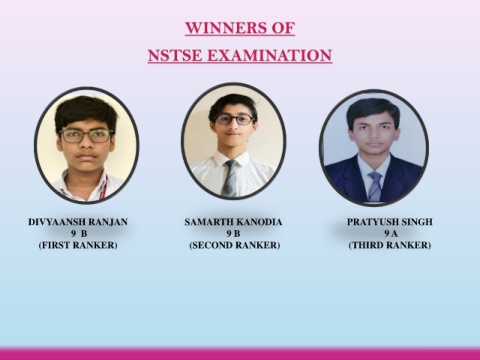 WINNERS OF NSTSE EXAMINATION DIVYAANSH RANJAN SAMARTH KANODIA PRATYUSH SINGH 9 B 9 B 9 A (FIRST RANKER) (SECOND RANKER) (THIRD RANKER)