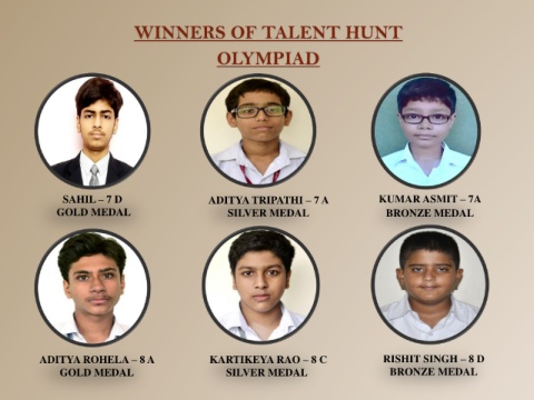 WINNERS OF TALENT HUNT OLYMPIAD SAHIL – 7 D ADITYA TRIPATHI – 7 A KUMAR ASMIT – 7A GOLD MEDAL SILVER MEDAL BRONZE MEDAL ADITYA ROHELA – 8 A KARTIKEYA RAO – 8 C RISHIT SINGH – 8 D GOLD MEDAL SILVER MEDAL BRONZE MEDAL