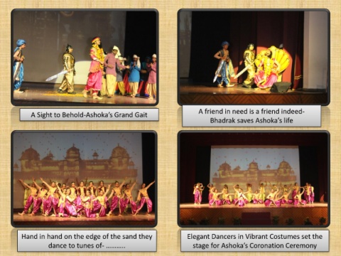 dance to tunes of- ……….. stage for Ashoka’s Coronation Ceremony