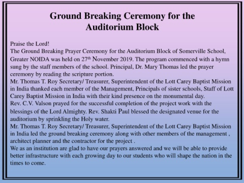 Carey Baptist Mission in India with their kind presence on the monumental day.