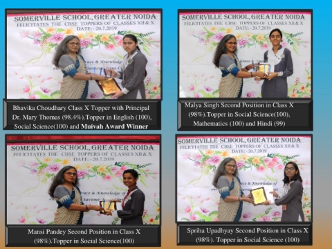 Dr. Mary Thomas (98.4%).Topper in English (100), (98%).Topper in Social Science(100),
