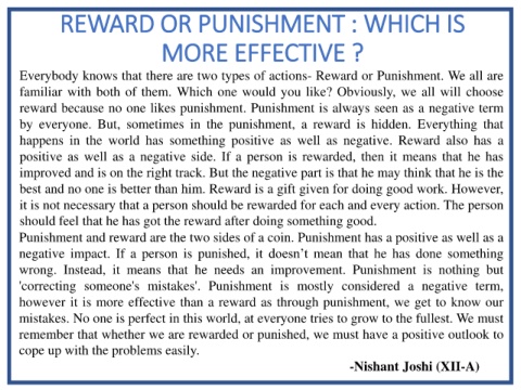 Everybody knows that there are two types of actions- Reward or Punishment. We all are