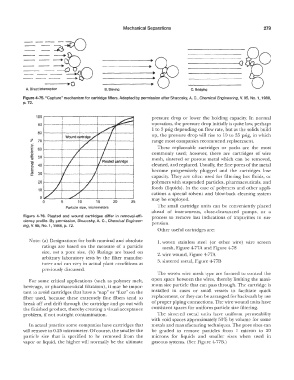 Figure 4-75. "Capture" mechanism for cartridge filters. Adapted by permission after Shucosky, A. C., Chemical Engineering, V. 95, No. 1, 1988,