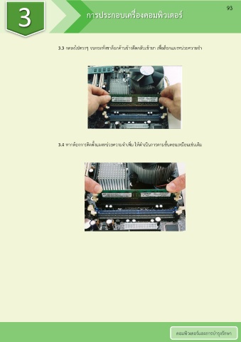 3 การประกอบเครื่องคอมพิวเตอร์ 93 3.3 กดลงไปตรงๆ จนกระทั่งขาล็อกด้านข้างดีดกลับเข้ามา เพื่อล็อกแผงหน่วยความจ า 3.4 หากต้องการติดตั้งแผงหน่วยความจ าเพิ่ม ให้ด าเนินการตามขั้นตอนเหมือนเช่นเดิม คอมพิวเตอร์และการบ ารุงรักษา