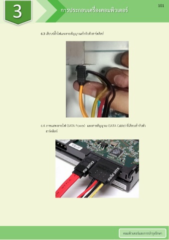 3 การประกอบเครื่องคอมพิวเตอร์ 101 6.3 เสียบปลั๊กไฟและสายสัญญาณเข้ากับตัวฮาร์ดดิสก์ 6.4 ภาพแสดงสายไฟ (SATA Power) และสายสัญญาณ (SATA CabIe) ที่เสียบเข้ากับตัว ฮาร์ดดิสก์ คอมพิวเตอร์และการบ ารุงรักษา