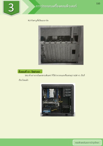 3 การประกอบเครื่องคอมพิวเตอร์ 110 9.5 ขับสกรูเพอยึดแผงการ์ด ื่ ขั้นตอนที่ 10 : ปิดฝาเคส 10.1 ตัวอย่างภายในเคสคอมพิวเตอร์ ที่ได้ประกอบและเชื่อมต่ออุปกรณ์ต่างๆ เป็นที่ เรียบร้อยแล้ว คอมพิวเตอร์และการบ ารุงรักษา