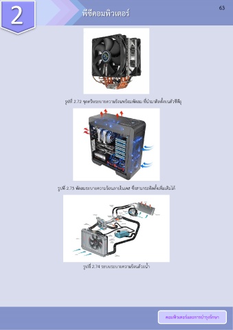 2 พีซีคอมพิวเตอร์ 63 รูปที่ 2.72 ชุดครีบระบายความร้อนพร้อมพัดลม ที่น ามาติดตั้งบนตัวซีพียู ิ่ รูปที่ 2.73 พัดลมระบายความร้อนภายในเคส ซึ่งสามารถติดตั้งเพมเติมได้ รูปที่ 2.74 ระบบระบายความร้อนด้วยน้ า คอมพิวเตอร์และการบ ารุงรักษา