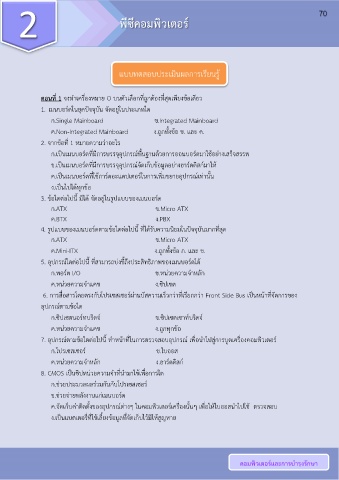 7. อุปกรณ์ตามขอใดต่อไปนี้ ท าหน้าที่ในการตรวจสอบอุปกรณ์ เพอน าไปสู่การบูตเครื่องคอมพิวเตอร์