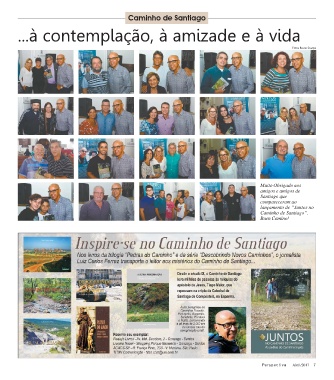 Caminho de Santiago ...à contemplação, à amizade e à vida Fotos Bruno Scarpa Muito Obrigado aos amigos e amigos de Santiago que compareceram ao lançamento de “Juntos no Caminho de Santiago”. Buen Camino! Perspectiva Abril/2017 7