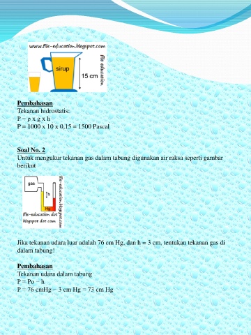 P = 1000 x 10 x 0,15 = 1500 Pascal