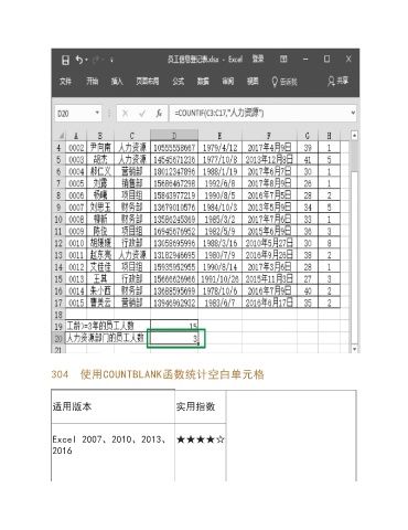 304 使用COUNTBLANK函数统计空白单元格 适用版本 实用指数 Excel 2007、2010、2013、 ★★★★☆ 2016