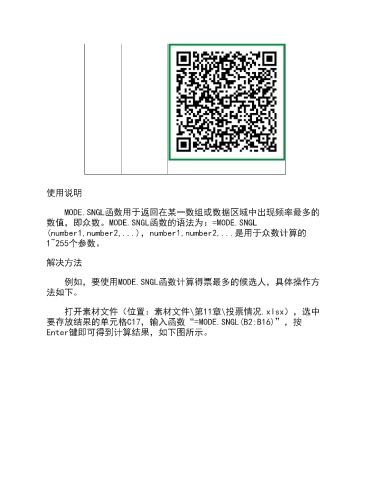 例如,要使用MODE.SNGL函数计算得票最多的候选人,具体操作方